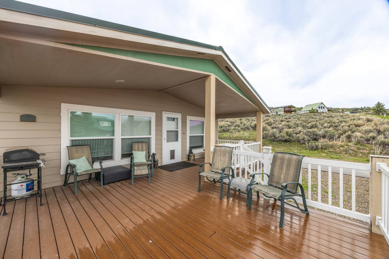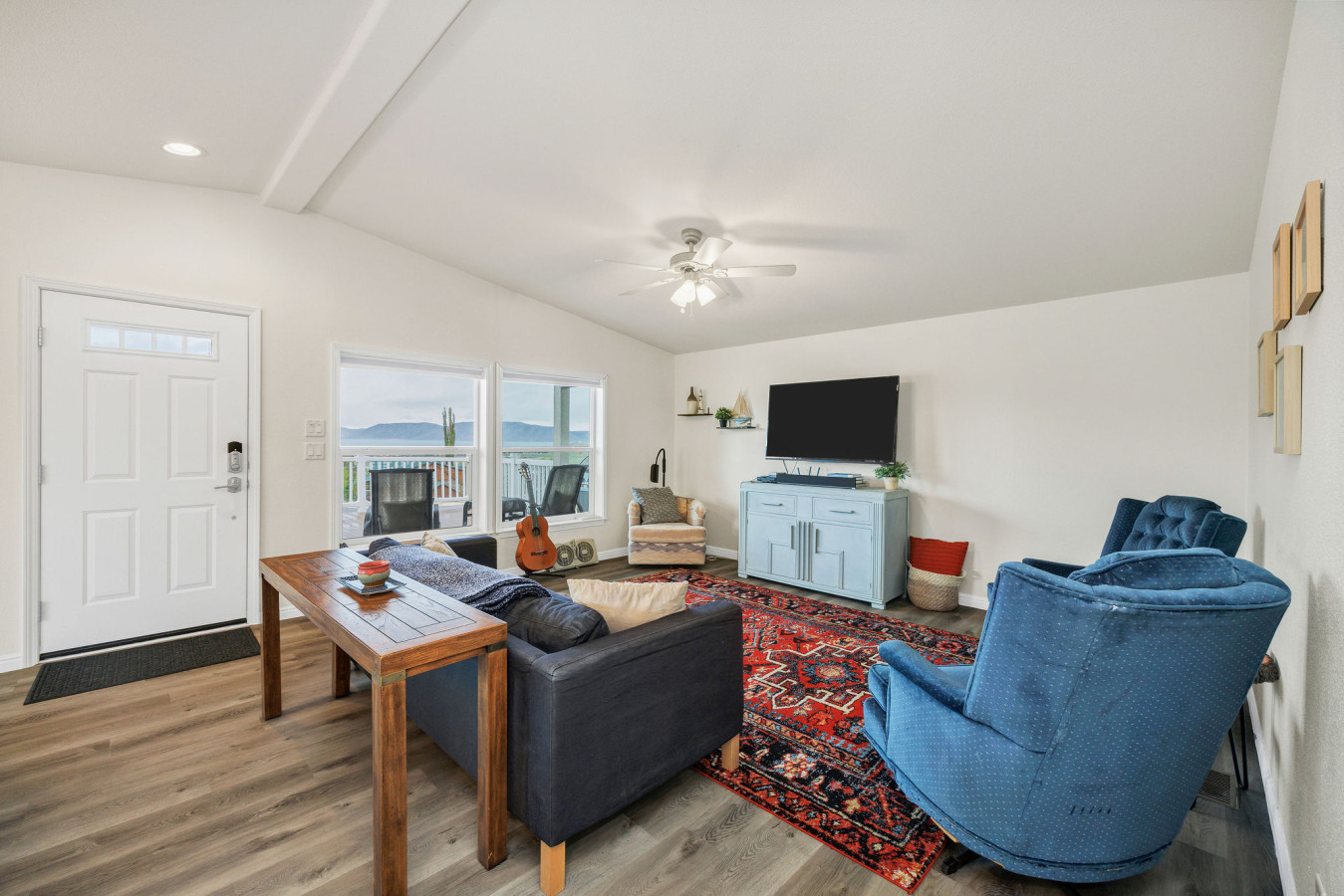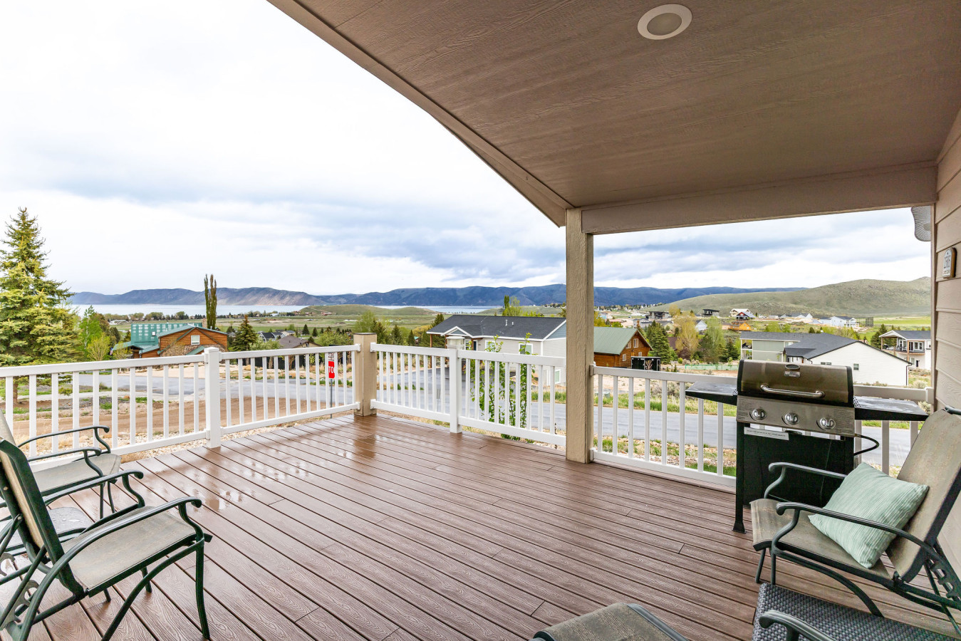 This Bear Lake house is not too big, not too small—it's juuust right! Whether you need a cozy spot to relax with family or friends after a day of fun at the lake, or you're just looking for a peaceful getaway with a great view, this is it. Located just a 5-minute drive from several beautiful beaches on the south end of Bear Lake. The spacious master suite features a king-size bed and a jacuzzi tub. There's also plenty of parking in the driveway for multiple vehicles and/or a boat.