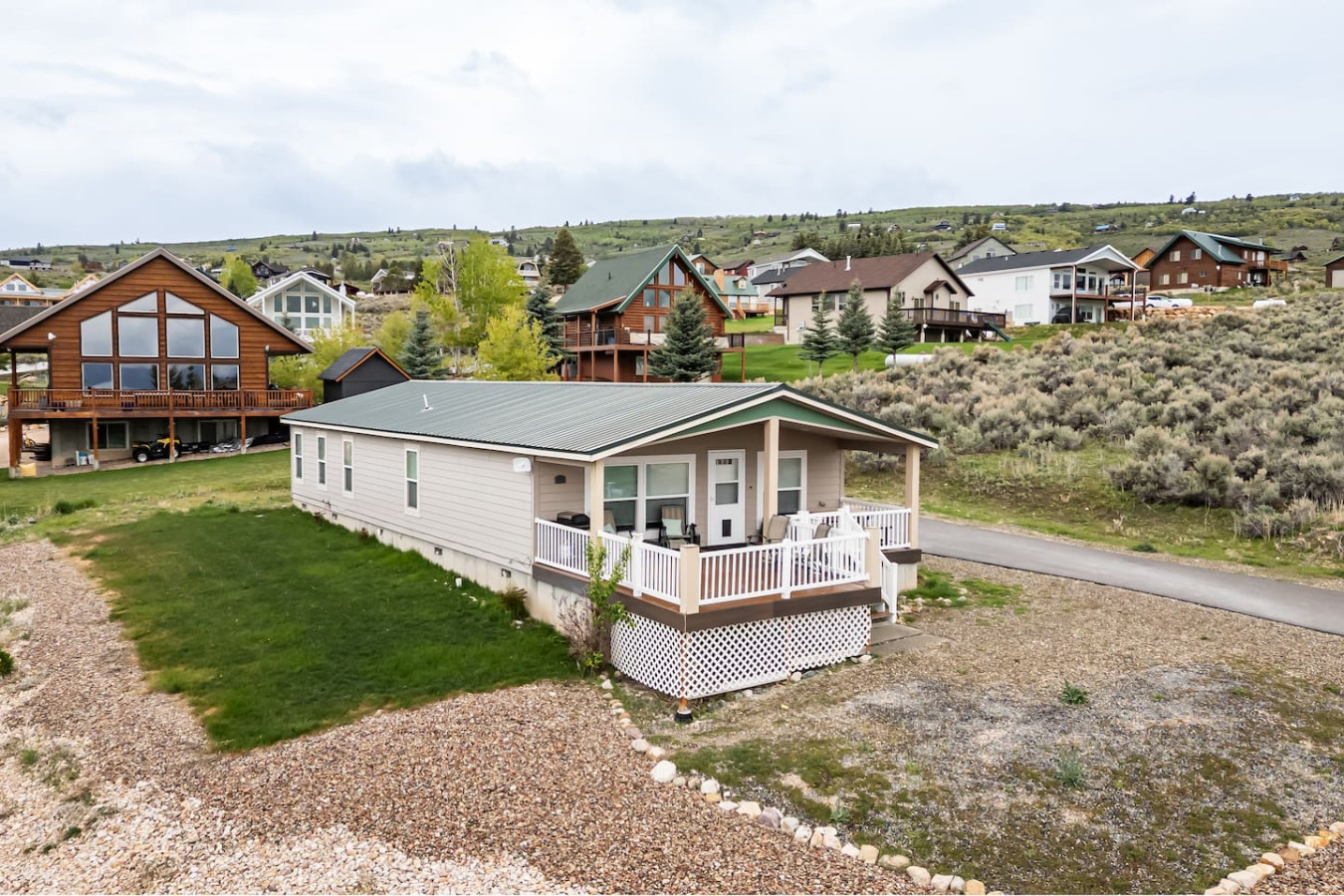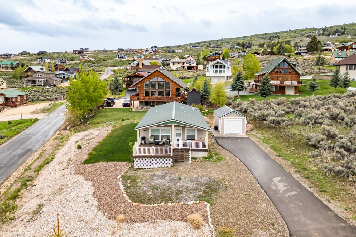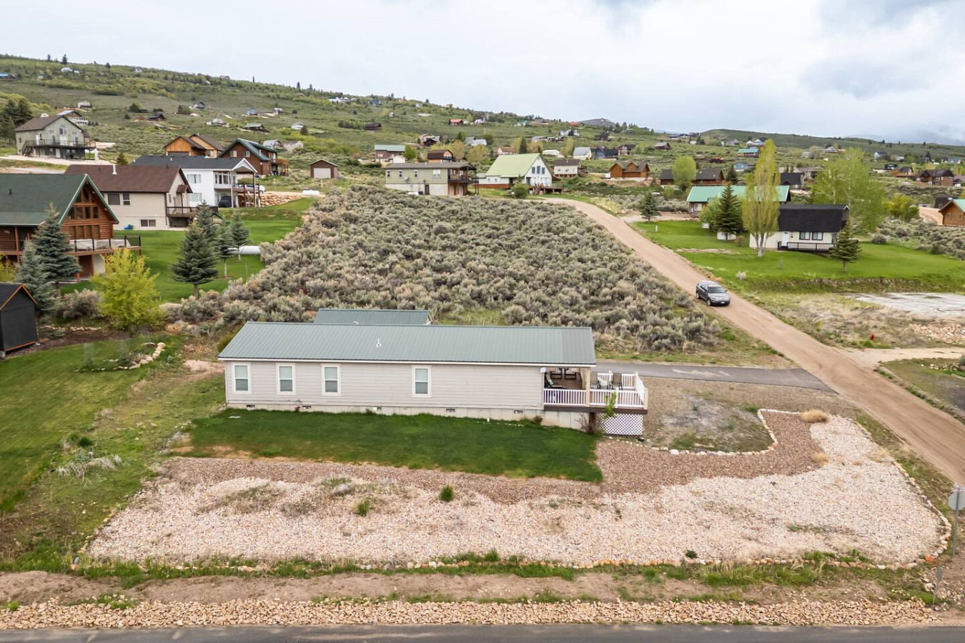 This Bear Lake house is not too big, not too small—it's juuust right! Whether you need a cozy spot to relax with family or friends after a day of fun at the lake, or you're just looking for a peaceful getaway with a great view, this is it. Located just a 5-minute drive from several beautiful beaches on the south end of Bear Lake. The spacious master suite features a king-size bed and a jacuzzi tub. There's also plenty of parking in the driveway for multiple vehicles and/or a boat.