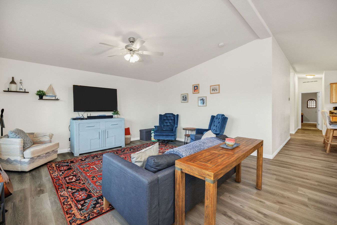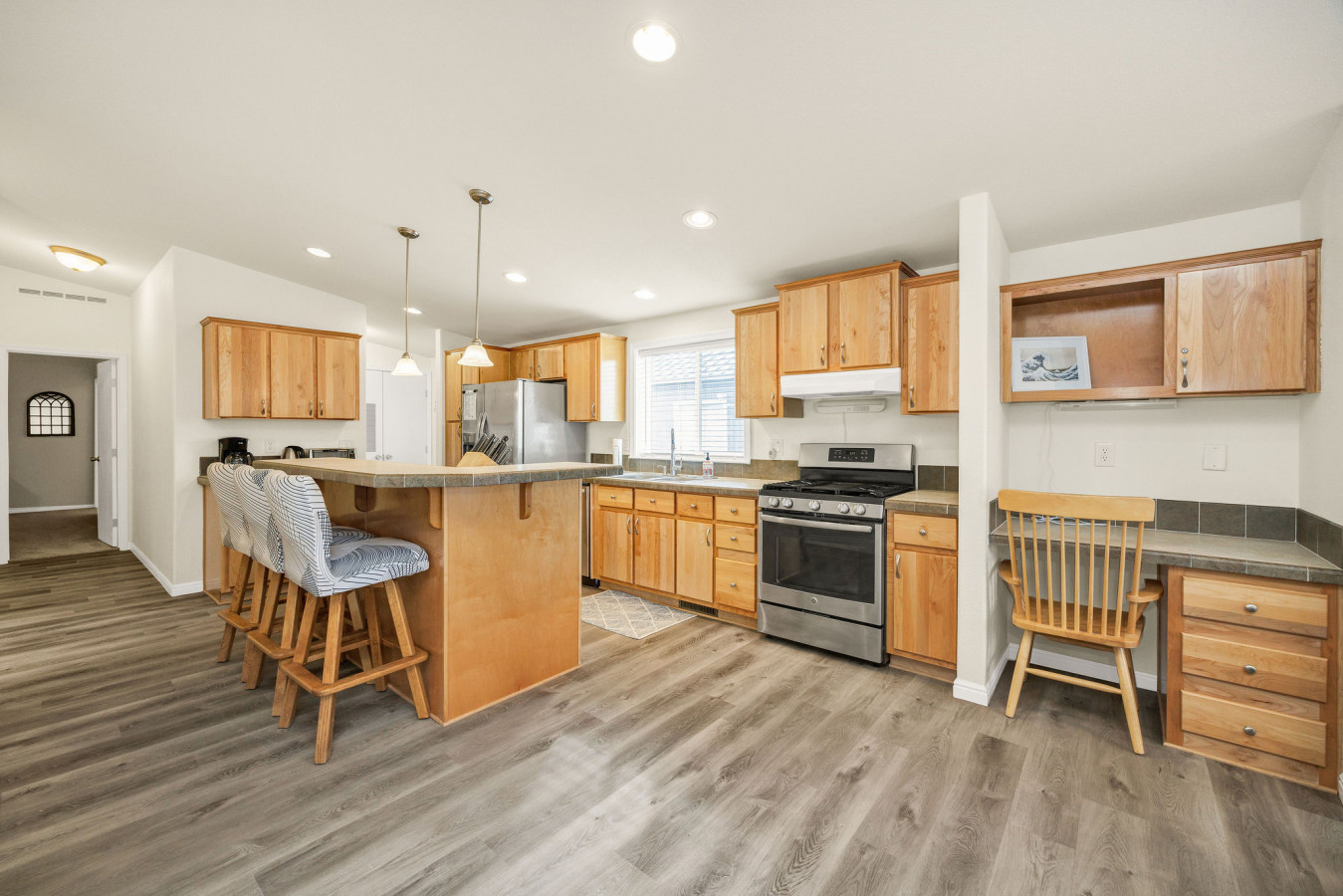 June 2025 4.00Everything was great. 4/5 stars for 2 reasons—There was quite a bit of dog hair in the carpets, blankets, sheets etc. Even when we prepared food it seemed like we were constantly brushing dog hair off the countertops. Second, the description does disclose that there is no AC and while we could cool the house down at nighttime with the window fans, during the day was pretty hot inside. If we would have been spending more time at the house during daytime hours it would have been more of an issue, I think. But overall it was well stocked with kitchen items, games for the kids, toiletries etc. The neighborhood was beautiful and quiet.