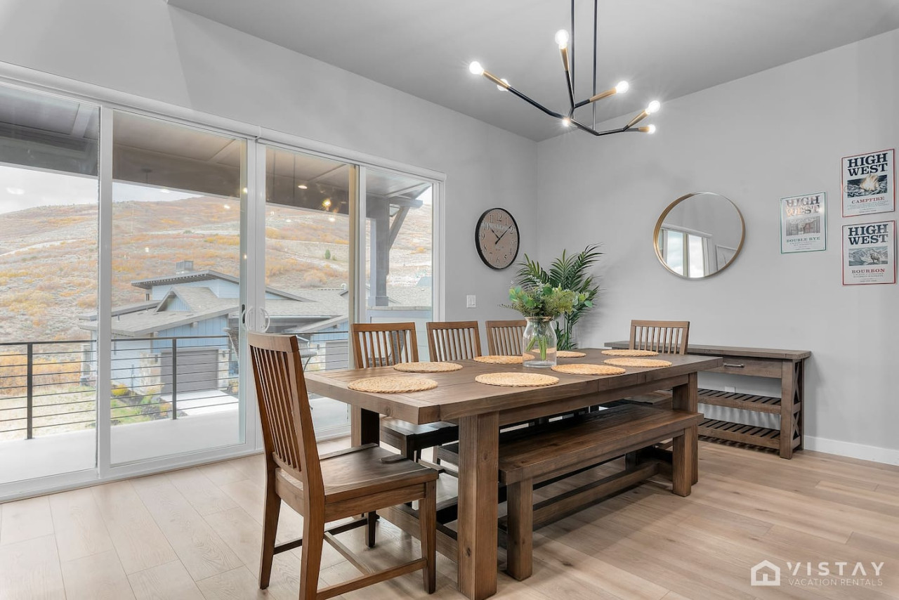 Experience unparalleled luxury in stunning 3,000 sqft retreat, built in 2022, where modern comfort meets breathtaking nature. Nestled with views of both Jordanelle Reservoir & Deer Valley, this property offers a serene backdrop for your mountain getaway. Relax and unwind with unique amenities like a boot warmer to prepare you for the slopes. With easy access to world-class skiing and outdoor activities, this is your gateway to experience the heart of the Rockies. Book now to secure your escape! MAIN LIVING SPACE The spacious living room features a smart TV equipped with streaming services like Netflix, Hulu, MAX, Apple TV, Disney, ESPN, NBC Sports, and SiriusXM music. Enjoy cozy evenings by the gas fireplace, which is easily operated with a remote, creating a warm and inviting atmosphere after a day of adventure. KITCHEN & DINING The kitchen is fully equipped for all your culinary needs, featuring a Nespresso Lattissima Touch for coffee lovers (capsules provided), a drip coffee maker with #4 cone coffee filters, and a wine opener. You'll find everything you need to prepare delicious meals and entertain guests in comfort. OUTDOOR LIVING Enjoy the fresh air and scenic views from the balcony, perfect for relaxing and unwinding outdoors. The garage can accommodate two midsize vehicles, with space in the driveway for two additional midsize vehicles. BEDROOMS Bedroom 1: King master bedroom Bedroom 2: Queen bed Bedroom 3: Two twin beds, with an additional rollaway bed located in the closet Loft: Sectional pullout sofa (queen) for extra sleeping space BATHROOMS Bathroom 1: Full bathroom with tub/shower combo Bathroom 2: Full bathroom with tub/shower combo Bathroom 3: Full bathroom with shower only Half Bath: Convenient half bathroom 4wd and snow tires or chains highly recommended Dec through end of March or when snow is present.